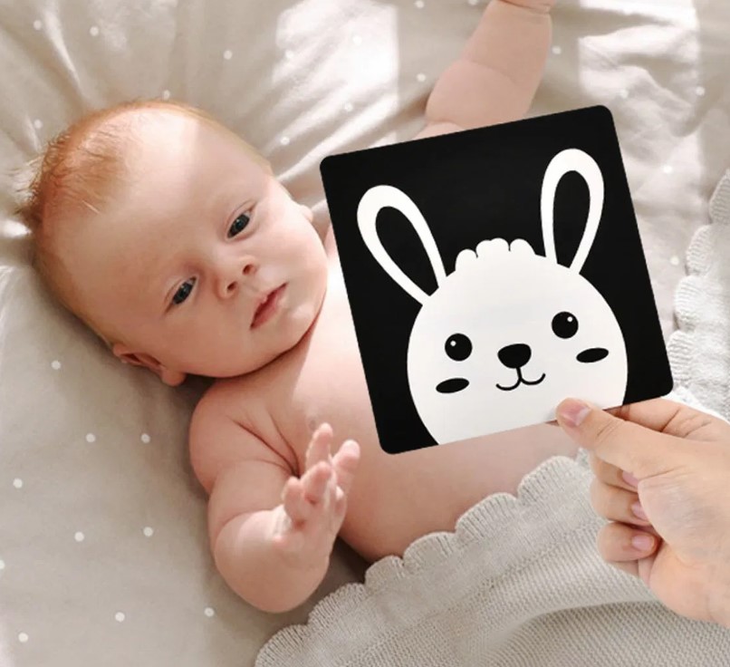 1. Țineți cardul la o distanță de 20–30 cm de fața bebelușului, unde vederea sa focalizează cel mai bine.