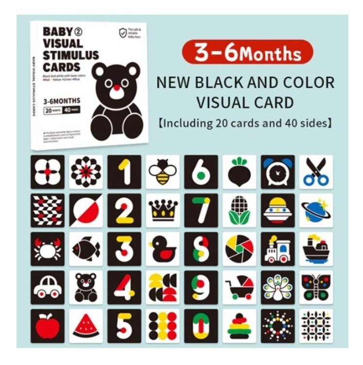 Aceste carduri sunt potrivite pentru bebelusii de la 3 la 6 luni, contine 20 carduri colorate ( ALB, NEGRU SI ROSU), folosite pentru antrenamentul de stimulare vizuala si dezvoltarea abilitatilor cognitive.