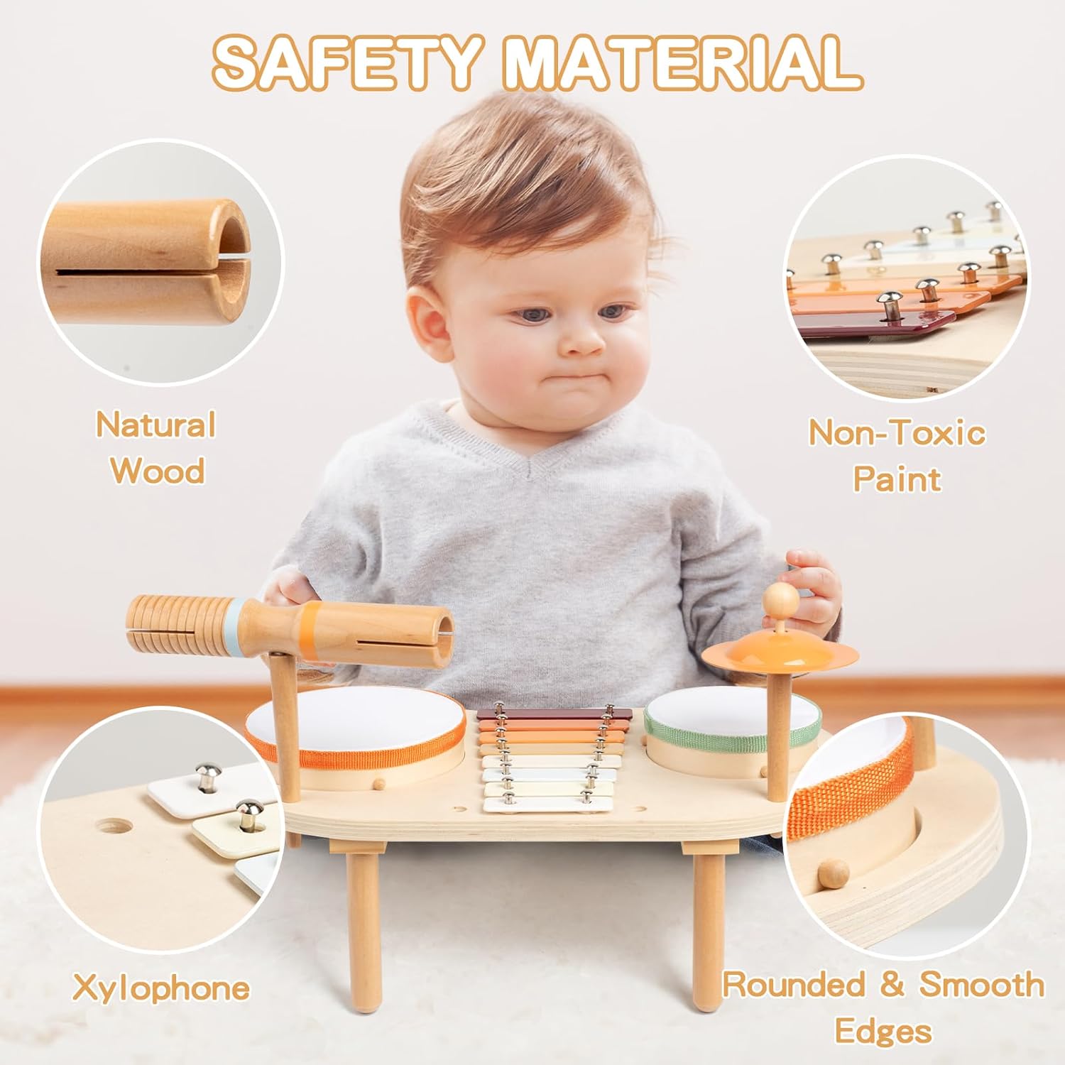 🔸 Cele două tobe oferă un ritm puternic și ajută la dezvoltarea coordonării.