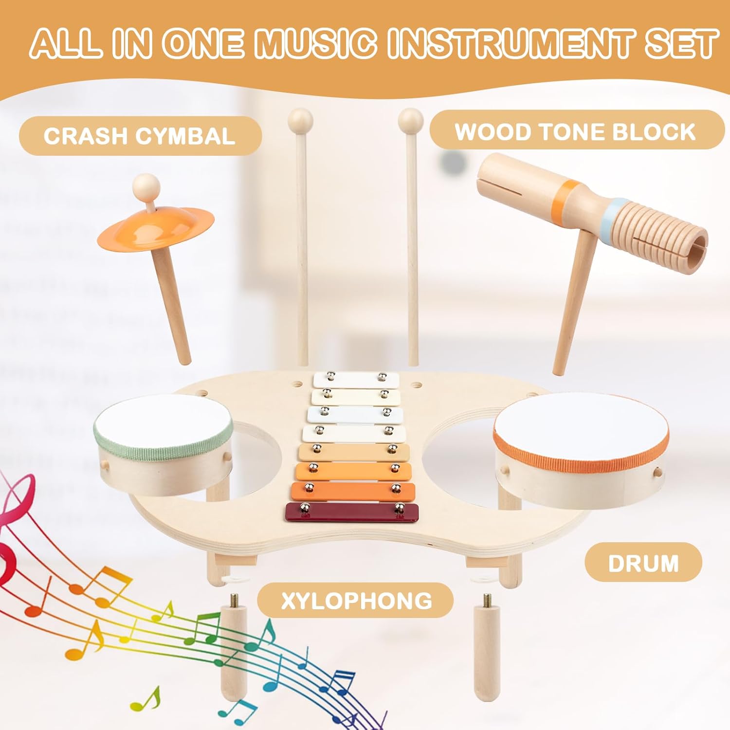 Set 5 instrumente muzicale din lemn pentru copii, Percutie