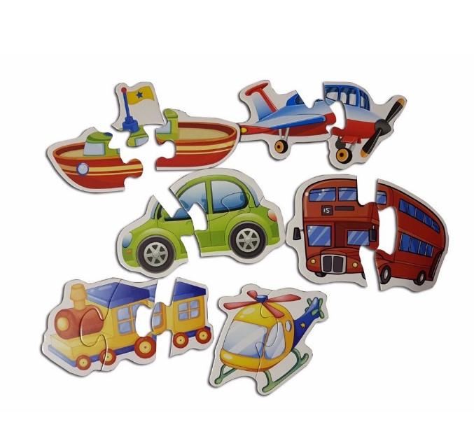 Set 6 puzzle-uri bebelusi din 2 sau 3 piese mari – Vehicule, 18 cm
