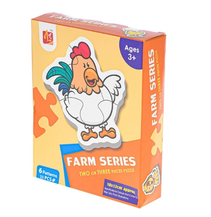 Conține: 6 puzzle-uri individuale, fiecare reprezentând câte un animal de la fermă.