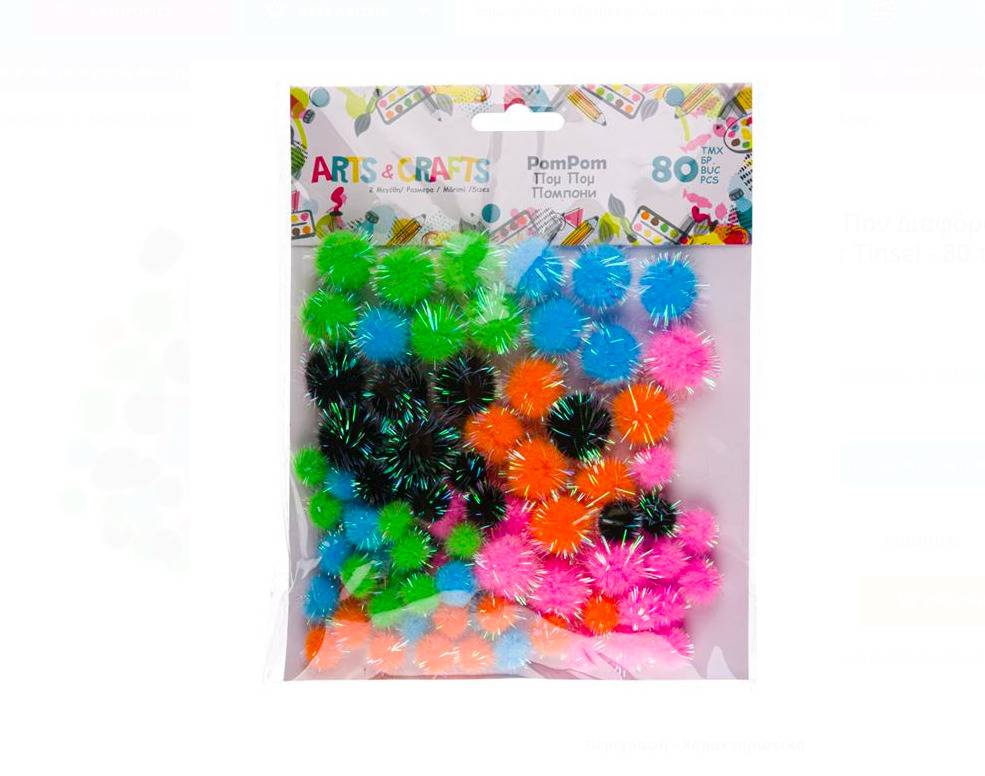 Setul pentru lucru manual acasa sau la gradinita contine 80 bucati pom-pom colorate in diverse culori: albastru, mov, portocaliu, galben, rosu.