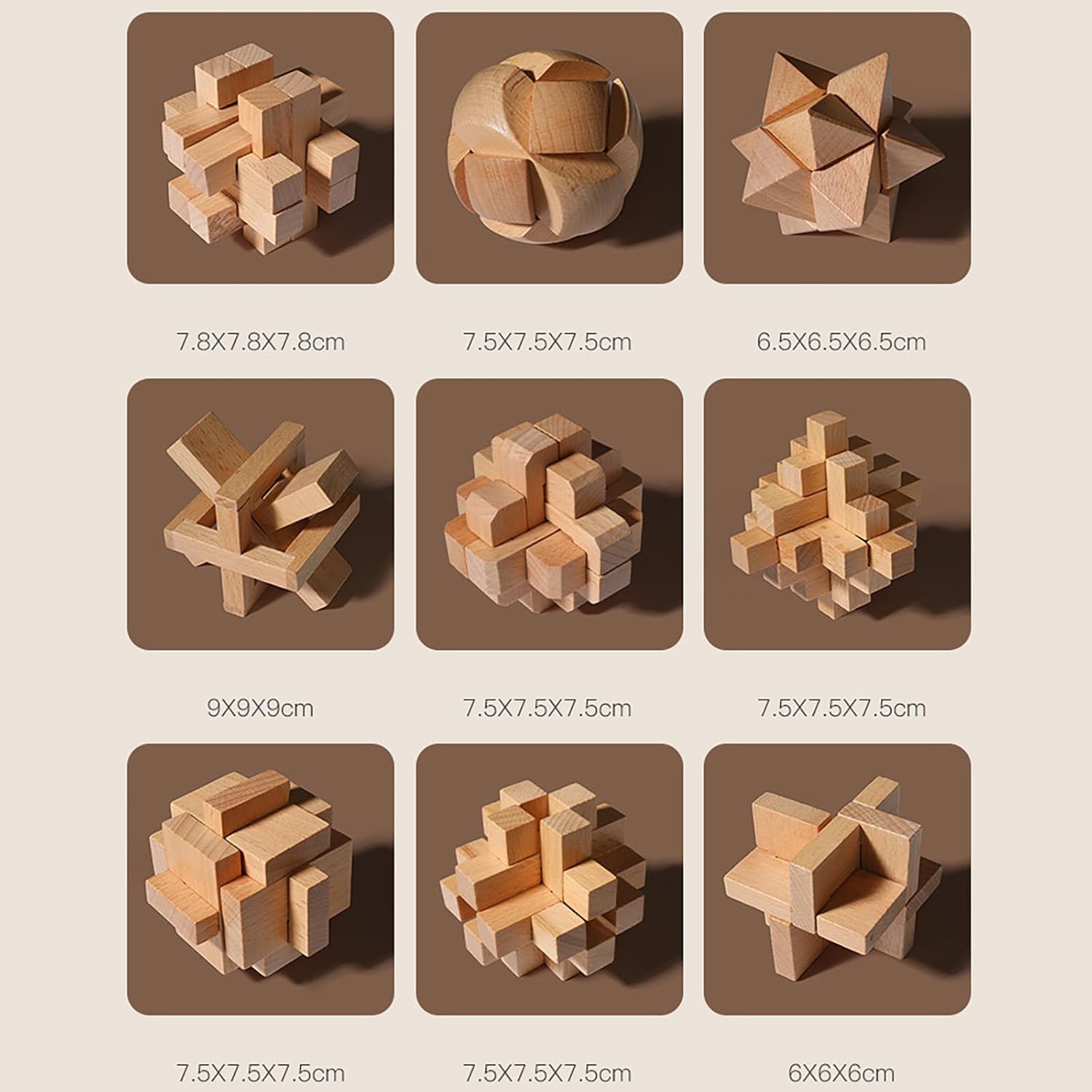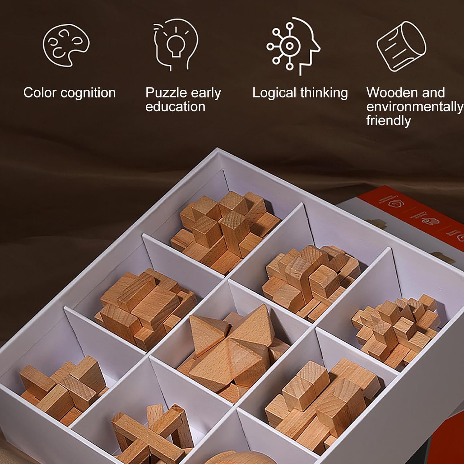 Setul conține 9 tipuri diferite de puzzle-uri interconectate, care trebuie dezasamblate și reasamblate, punând la încercare atenția, răbdarea și coordonarea mâini-ochi a copilului. Acestea sunt concepute pentru a sprijini dezvoltarea cognitivă prin joc, fiind potrivite atât pentru copii, cât și pentru adulți care doresc o provocare intelectuală.