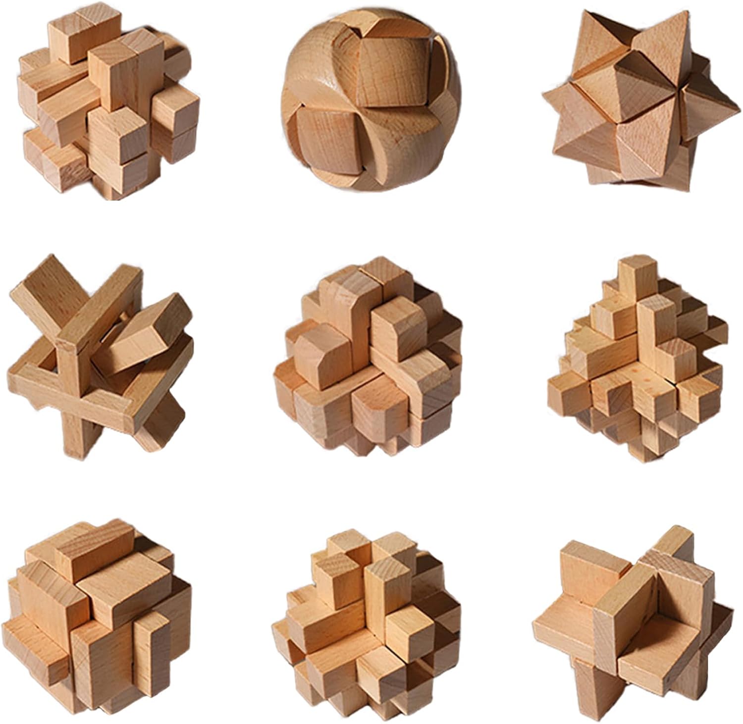 Setul de 9 jocuri logice din lemn – Încuietori Lu Ban este o colecție de puzzle-uri tridimensionale inspirate din mecanismele tradiționale chinezești. Aceste puzzle-uri sunt realizate din lemn masiv de fag, prelucrat cu grijă pentru a asigura o experiență plăcută de manipulare și rezolvare. Fiecare model are un design unic, oferind provocări variate care dezvoltă gândirea logică și motricitatea fină a copiilor.