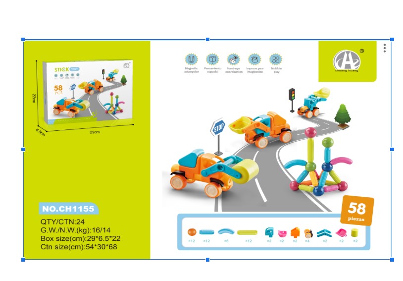 Descoperă un joc creativ și educativ care îmbină distracția construcțiilor 3D cu fascinația pentru utilaje! Cu 58 de piese magnetice viu colorate, acest set oferă copiilor posibilitatea de a construi vehicule de șantier și structuri imaginative, dezvoltând în același timp gândirea logică și coordonarea.