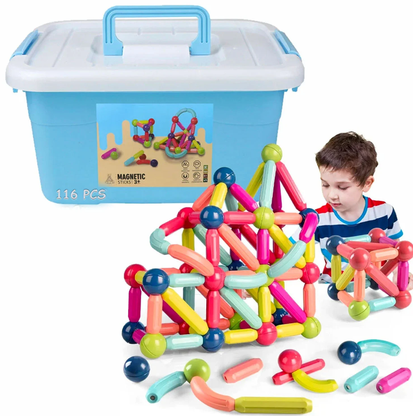 Setul de construcție 3D magnetic cu 88 de piese este o jucărie educativă STEM care îmbină distracția cu învățarea. Cu ajutorul tijelor magnetice și al bilelor de conexiune, copiii pot crea structuri variate – de la forme geometrice simple până la construcții complexe. Jocul stimulează imaginația, logica și abilitățile de rezolvare a problemelor.
