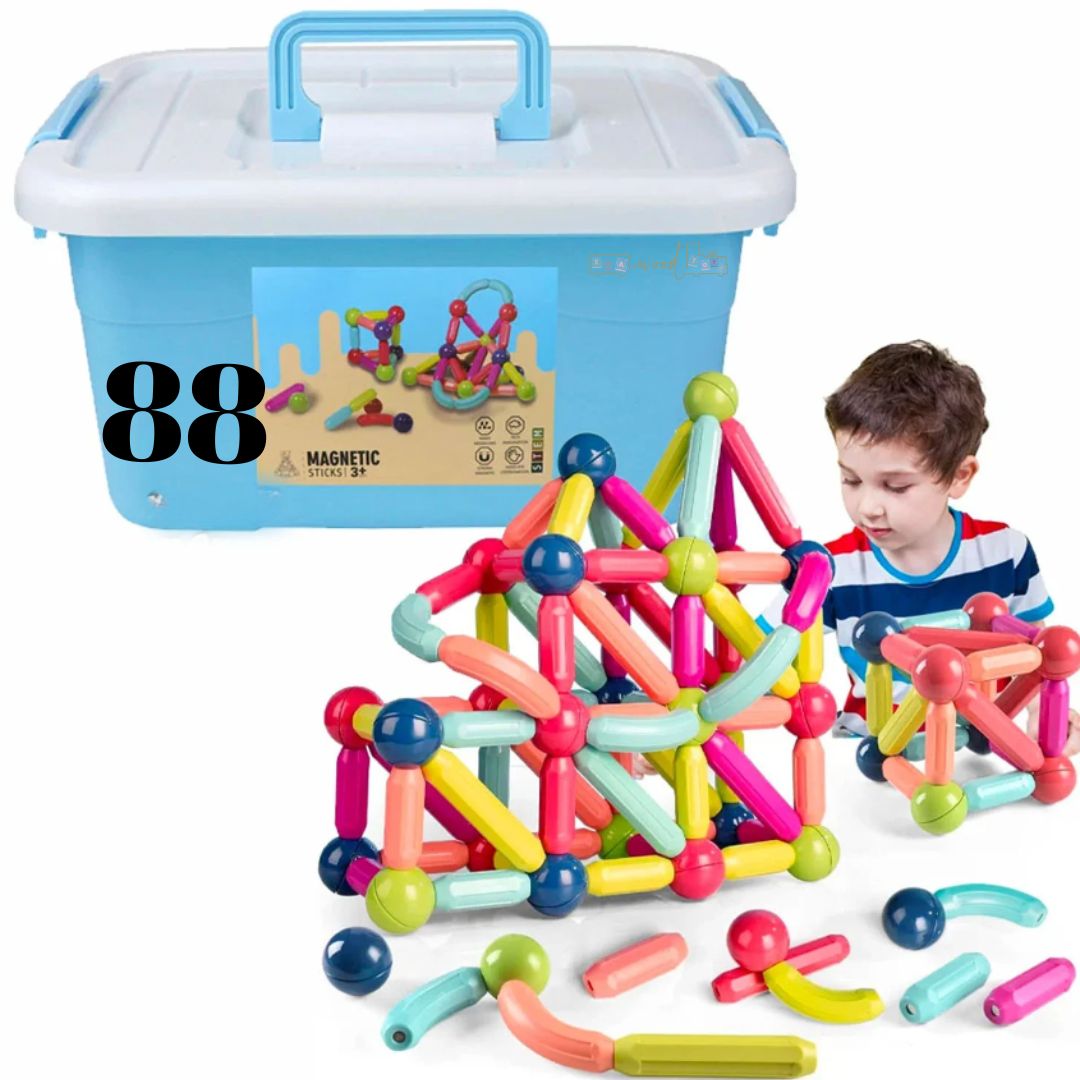 Număr piese: 88 bucăți (tije magnetice colorate + bile de conexiune).