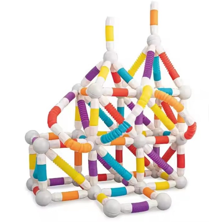 Tuburile flexibile pot fi întinse, răsucite și combinate cu bilele magnetice, oferind o experiență unică de joacă interactivă.