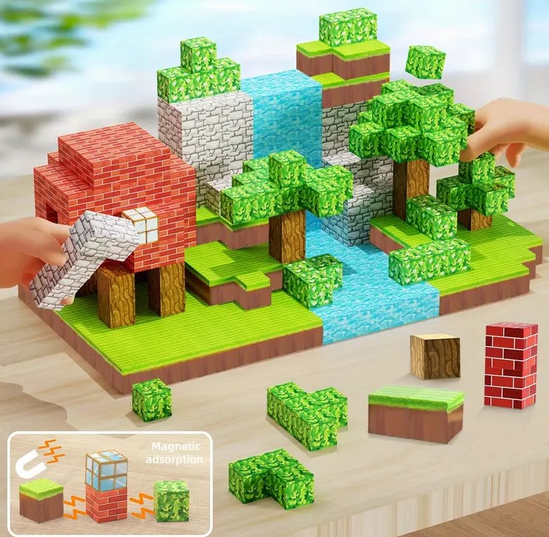 Creează un colț de natură inspirat din lumea Minecraft cu acest set de construcție magnetic cu 148 de piese, potrivit pentru copiii de peste 3 ani. Cuburile colorate se conectează magnetic, fiind ușor de manevrat chiar și de mânuțele mici. Perfect pentru construirea de copaci, peisaje și structuri în stil pixelat, acest set stimulează imaginația și dezvoltă abilitățile cognitive ale celor mici.