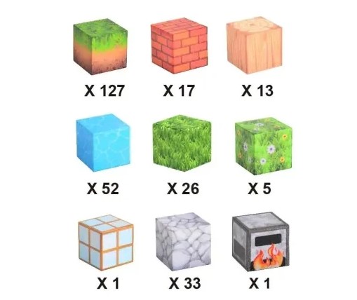 Construiți decoruri inspirate din Minecraft: clădiri, poduri, copaci, peisaje.