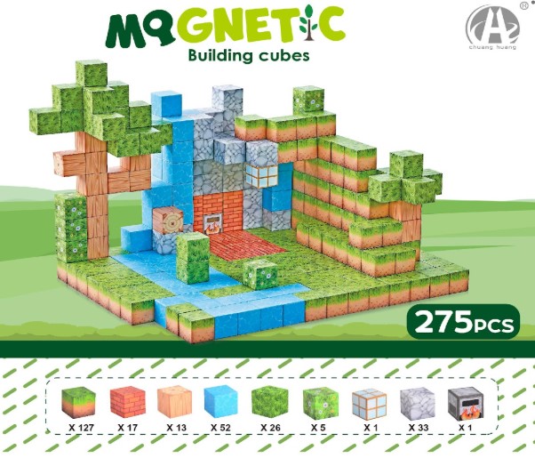 Transformă joaca într-o aventură creativă cu Setul de construcție magnetic cu 275 piese, inspirat din Minecraft! Conceput pentru copiii de peste 3 ani, acest set oferă o combinație perfectă între distracție, logică și educație. Cuburile viu colorate, imprimate în stil pixelat, se conectează ușor datorită sistemului magnetic și permit construirea de structuri 3D fascinante: case, copaci, râuri și decoruri din lumea jocului.