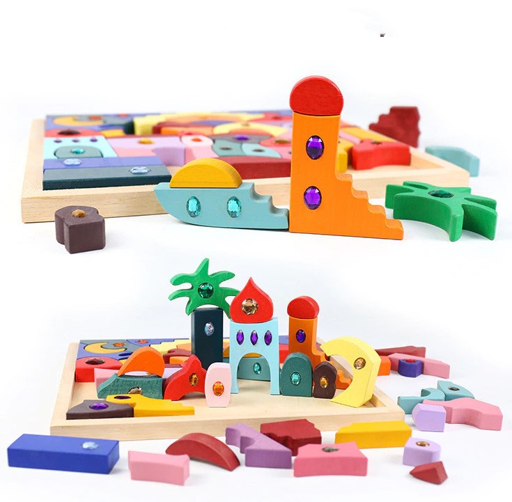 Acest set de cuburi senzoriale din lemn este o invitație deschisă spre creativitate, explorare și joc simbolic. Inspirat din basmele orientale și poveștile din „1001 de nopți”, setul îmbină elemente de construcție liberă (Loose Parts) cu design senzorial, transformând fiecare sesiune de joacă într-o experiență estetică și educativă.