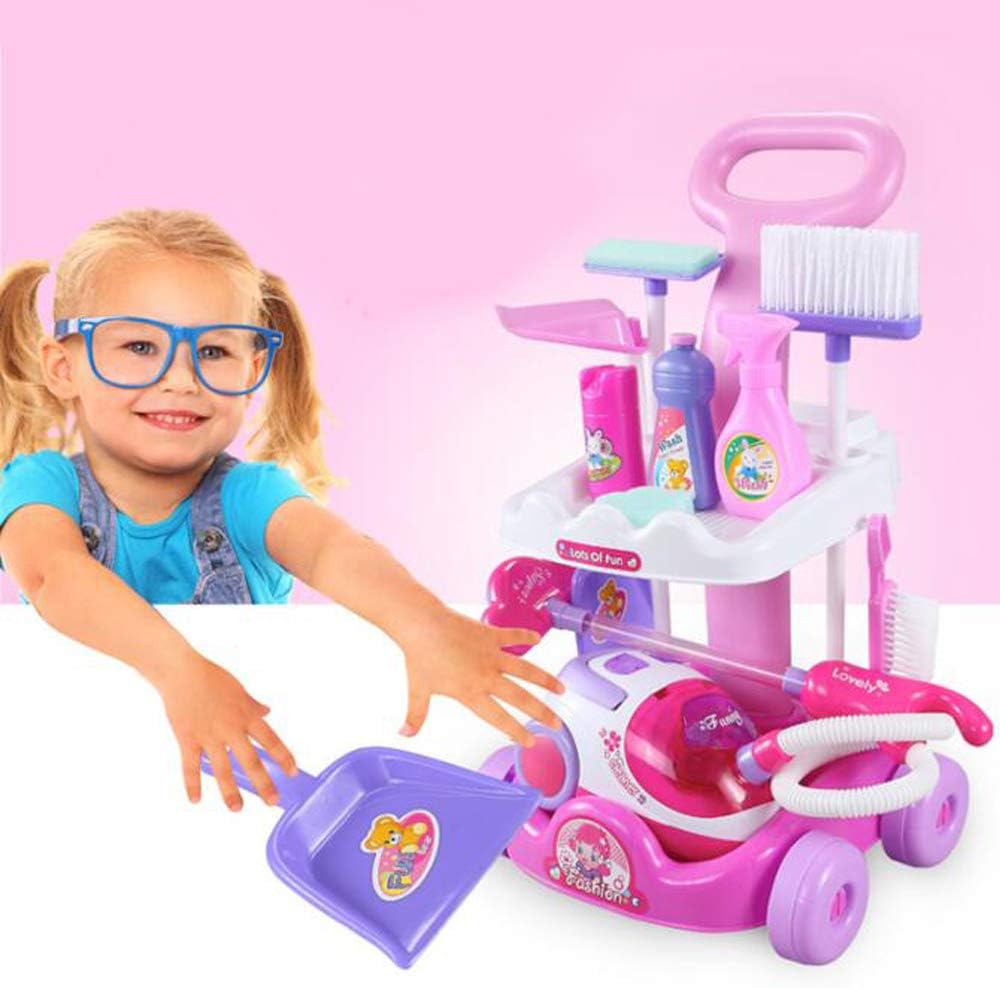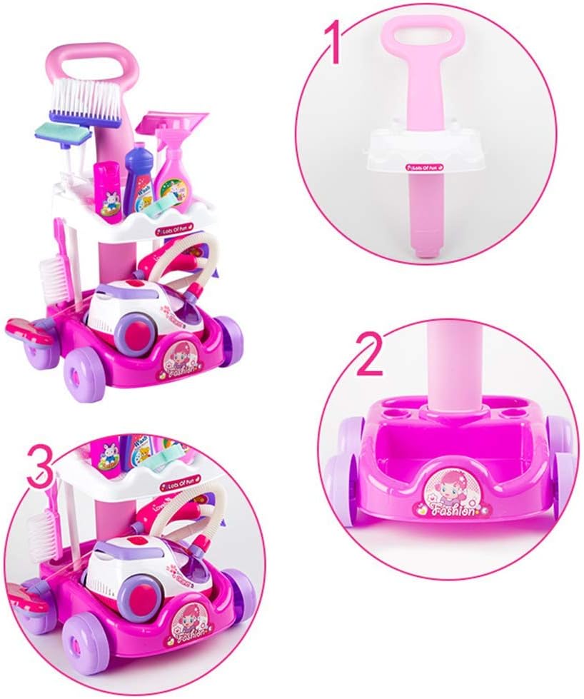 Copiii pot împinge căruciorul prin casă, pot imita curățenia zilnică și se pot distra în timp ce dezvoltă abilități motorii fine și simțul ordinii.