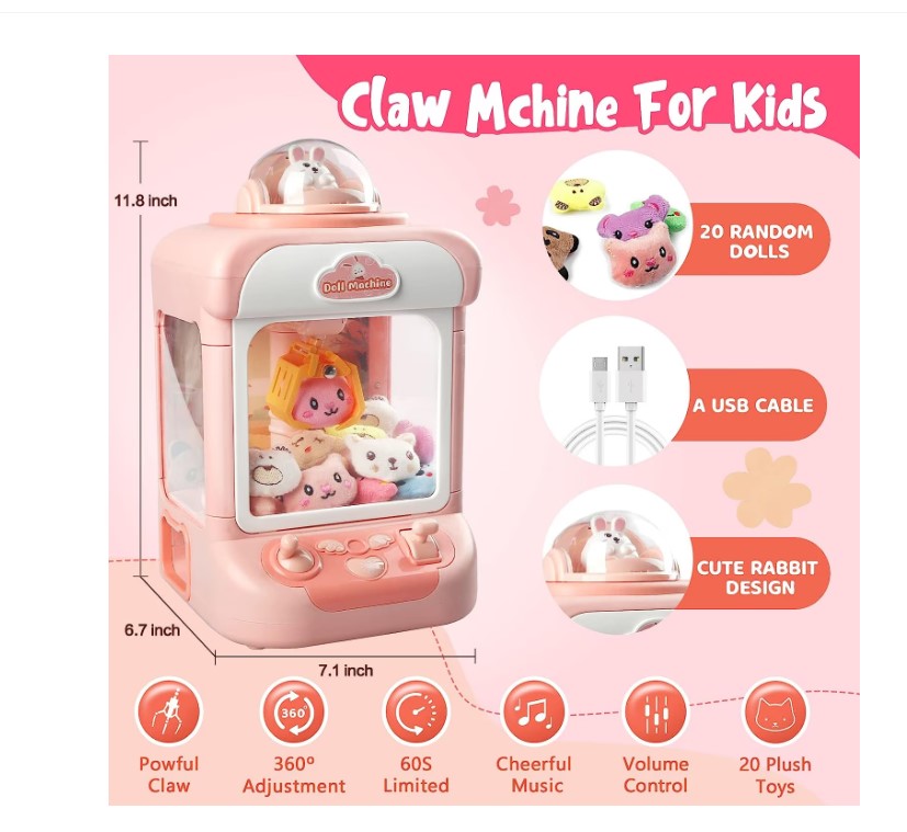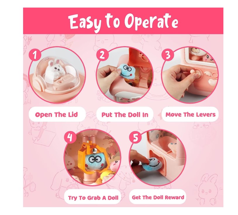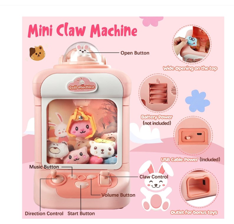 1 x Mașină cu gheară electrică (design roz cu iepuraș decorativ)