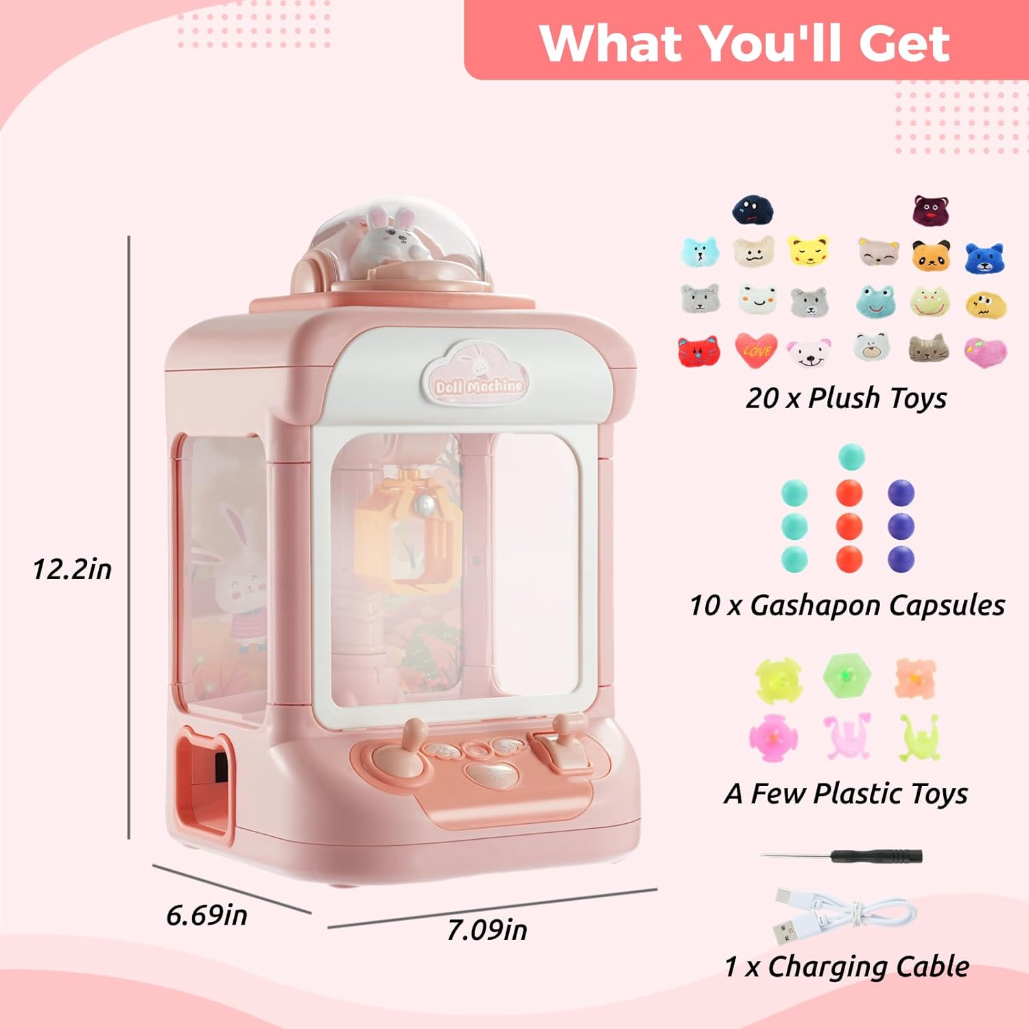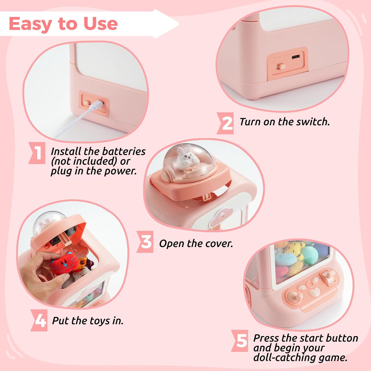 Mașinuță interactivă cu gheară – Gashapon Claw Machine, Roz, 3-6 ani