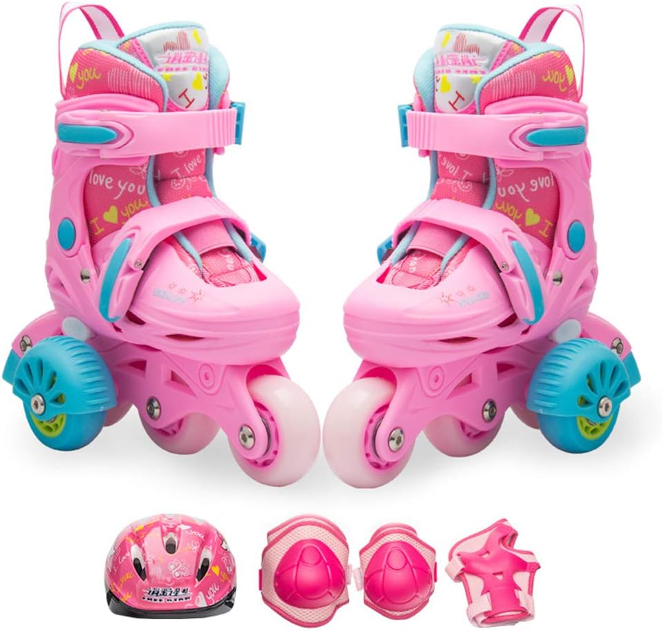 Set Role reglabile cu lumini, roti ajutatoare si echipament protectie, 29-32 cm, ROZ