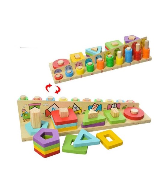 Sortator forme geometrice, joc logaritmic, 2 in 1 activitati, 3 ani