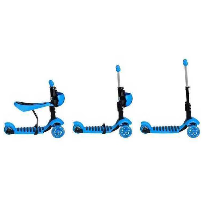 Trotineta multifunctionala este utila pentru 3 etape de dezvoltare ale copilului, putand fi folosita incepand cu varsta de 2 ani, apoi transformandu-se treptat in functie de inaltimea copilului.