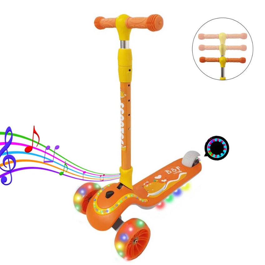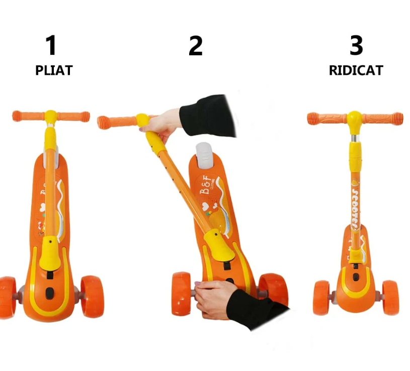 Trotineta pliabila cu 3 roti, lumini si muzica, 3 ani+, Portocaliu