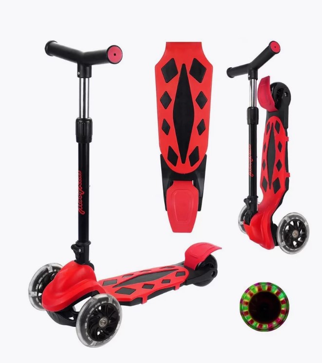 Trotineta pliabila, reglabila cu 3 roti din silicon, Rosu, 3 ani