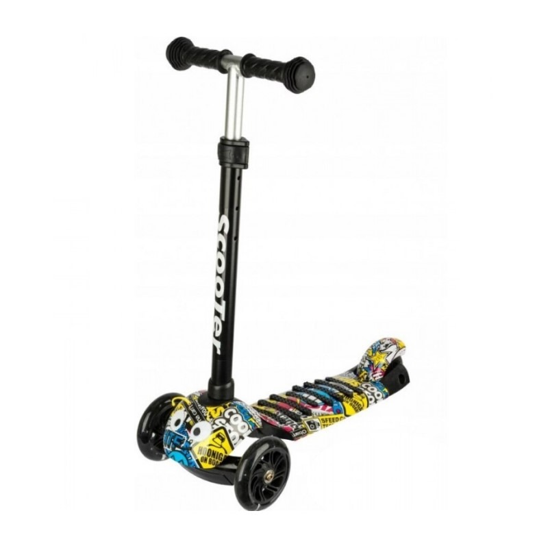 Această trotinetă este ideală pentru plimbări în parc sau pe trotuar, oferind copiilor o metodă distractivă de a-și dezvolta abilitățile motorii și de a face mișcare. Culoarea multicoloră și designul vesel fac ca trotineta să fie preferata micuților aventurieri!