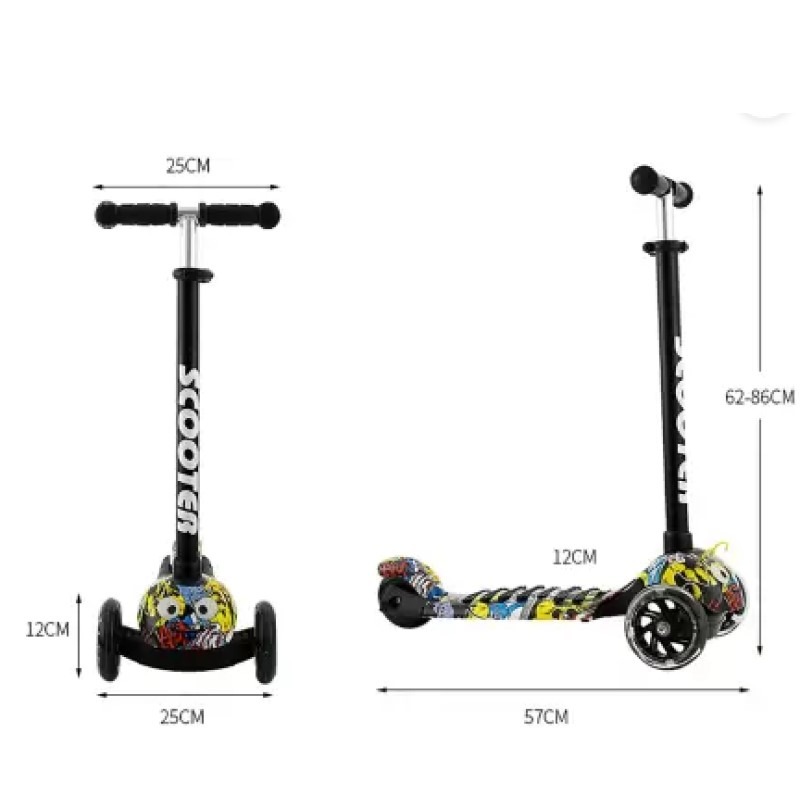 Trotineta reglabilă cu 3 roți este alegerea perfectă pentru copiii cu vârsta de la 3 ani în sus, oferindu-le o experiență sigură, distractivă și plină de culoare. Cu un design modern și vibrant, această trotinetă îi va atrage pe cei mici și îi va ajuta să își dezvolte echilibrul și coordonarea într-un mod natural și distractiv.