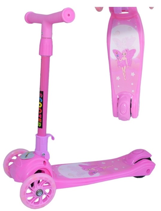 Trotineta reglabila cu 3 roti din silicon cu lumini, Roz 3 ani