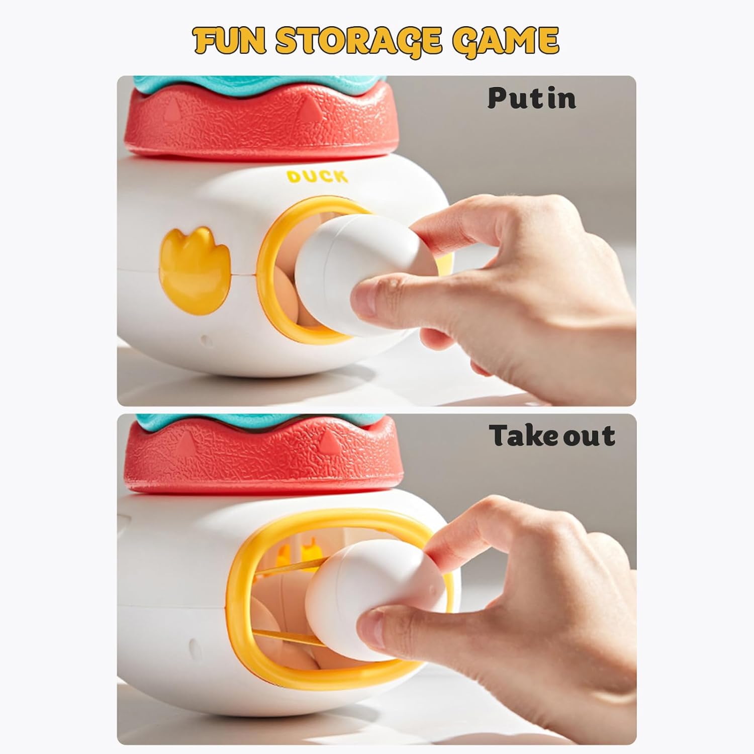 Un joc educativ multifuncțional, conceput pentru a stimula dezvoltarea cognitivă și motrică a copiilor încă de la vârsta de 1 an. Turnul senzorial cu formă de rață îmbină activități variate: stivuirea inelelor colorate, potrivirea ouălor cu forme geometrice și exerciții tactile care ajută la recunoașterea culorilor, texturilor și formelor.