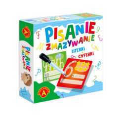 Jucărie educativă, adresată copiilor care încep să învețe să citească, să scrie și să numere. Pe 16 cartonasul cu două fețe vom găsi materiale pentru a învăța numerele de la 1 la 12, literele mari și mici ale alfabetului, precum și puzzle-uri simple, sarcini matematice și exerciții manuale. Datorită markerului cu ștergere, exercițiile pot fi repetate de mai multe ori până când deprinderea este stăpânită.