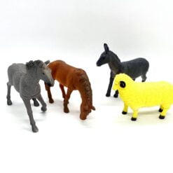 Acest set contine patru animale domestice care se gasesc la ferma: o oita, doi cai si un magar.