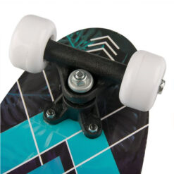 Skateboard multicolor cu design modern, cu cadru din aluminiu si rulmenti ABEC-5 si roti PU de 50×30 mm.